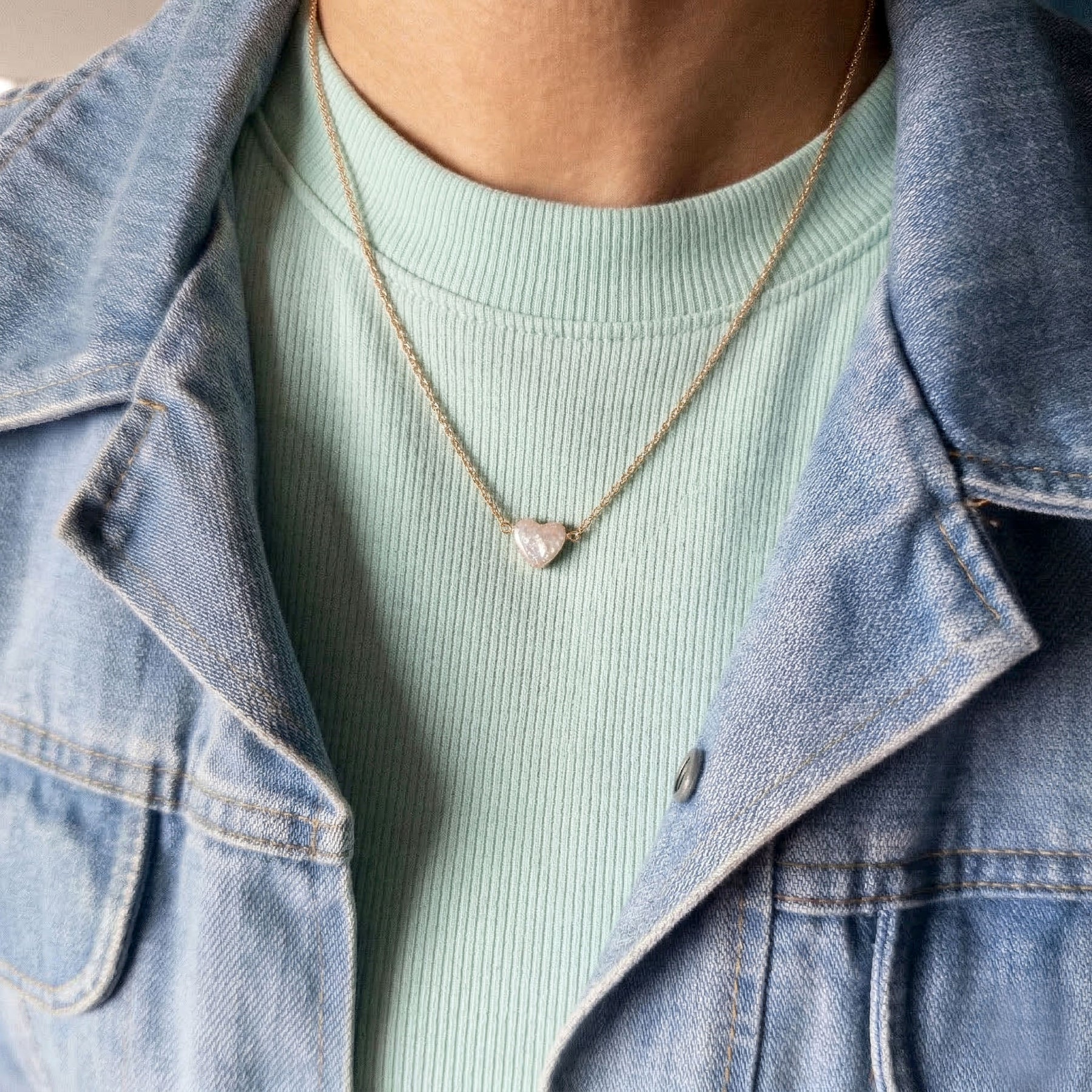 This necklace features a natural heart-shaped freshwater pearl, each one uniquely formed and full of soft, organic character. No two are exactly alike, which is kind of the point. It’s romantic, a little imperfect, and effortlessly cool.